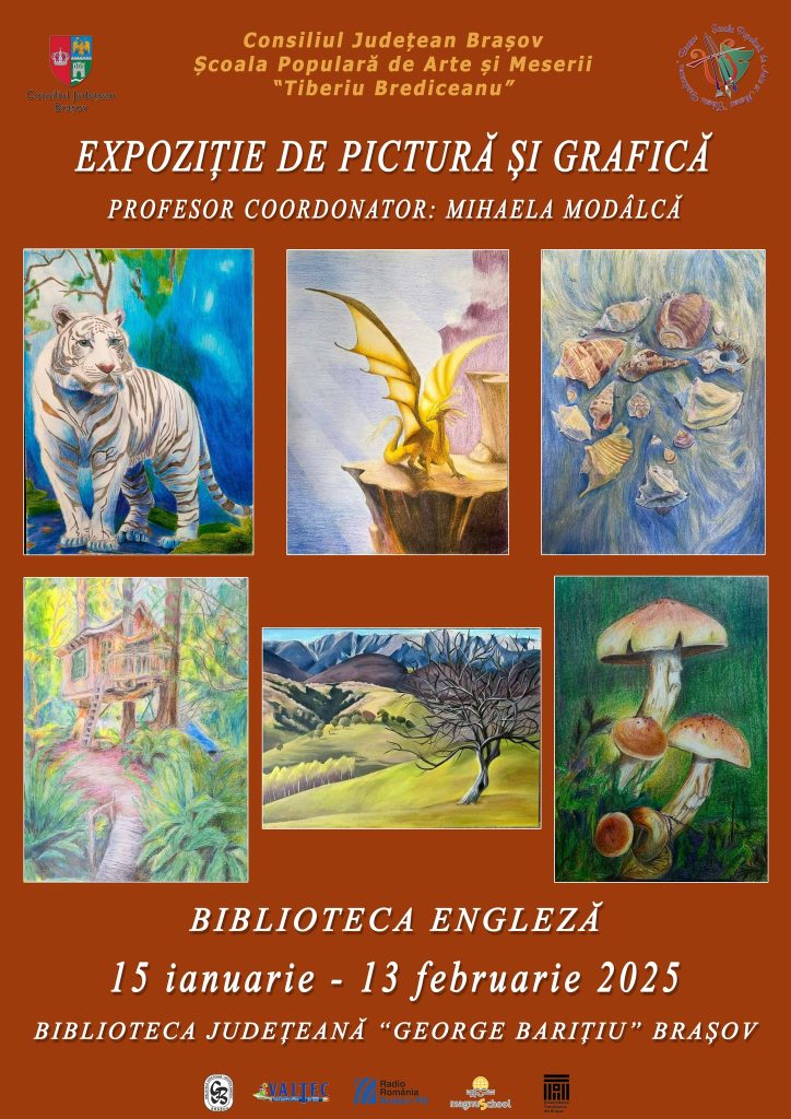 În perioada 15 ianuarie-13 februarie 2025, Biblioteca engleză găzduiește Expoziția de pictură și grafică a elevilor Școlii Populare de Arte și Meserii „Tiberiu Brediceanu” Brașov – anul I, II, III și anii de specializare I și II, cu vârste cuprinse între 8 și 19 ani, coordonați de profesoara Mihaela Modâlcă.