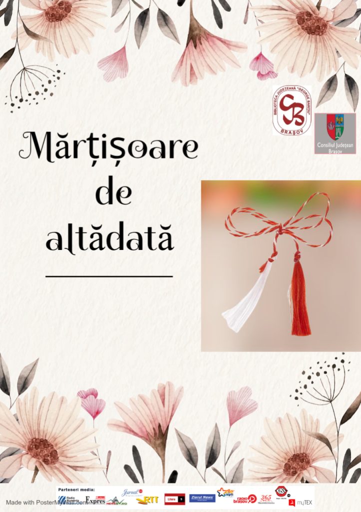 Vă invităm la etajul I al Bibliotecii Județene „George Barițiu” să descoperiți expoziția „Mărțișoare de altădată„, realizată de colegele noastre Eva Dinu (Compartiment Bibliografic) și Oana Popescu.